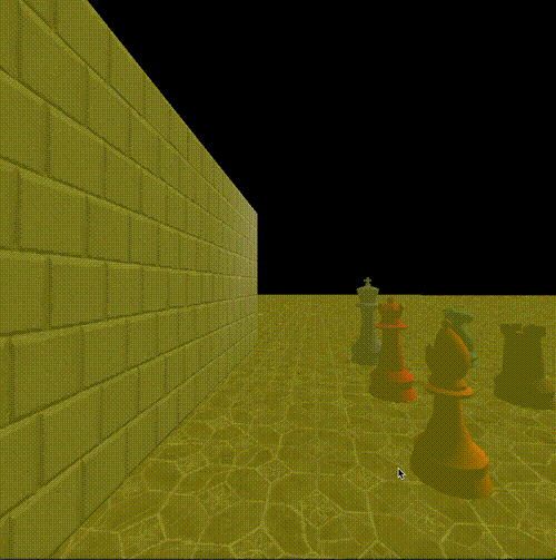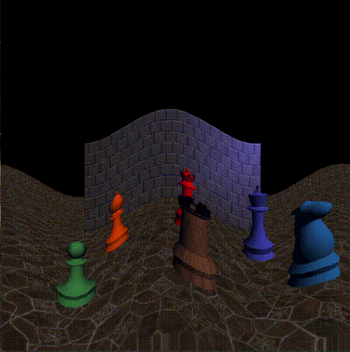 Another example using the z-buffer: Let’s say we want to darken each pixel based on the distance from the camera. It almost looks like we’re holding a torch or flashlight, but we didn’t add any lighting to the scene, it is purely done in post-processing on a per-pixel basis.