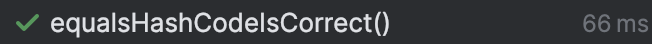 The test is still green. Now one might conclude that we can delete the test since equals and hashCode are implicitly implemented by the record, however that is not (necessarily) true for a few reasons: